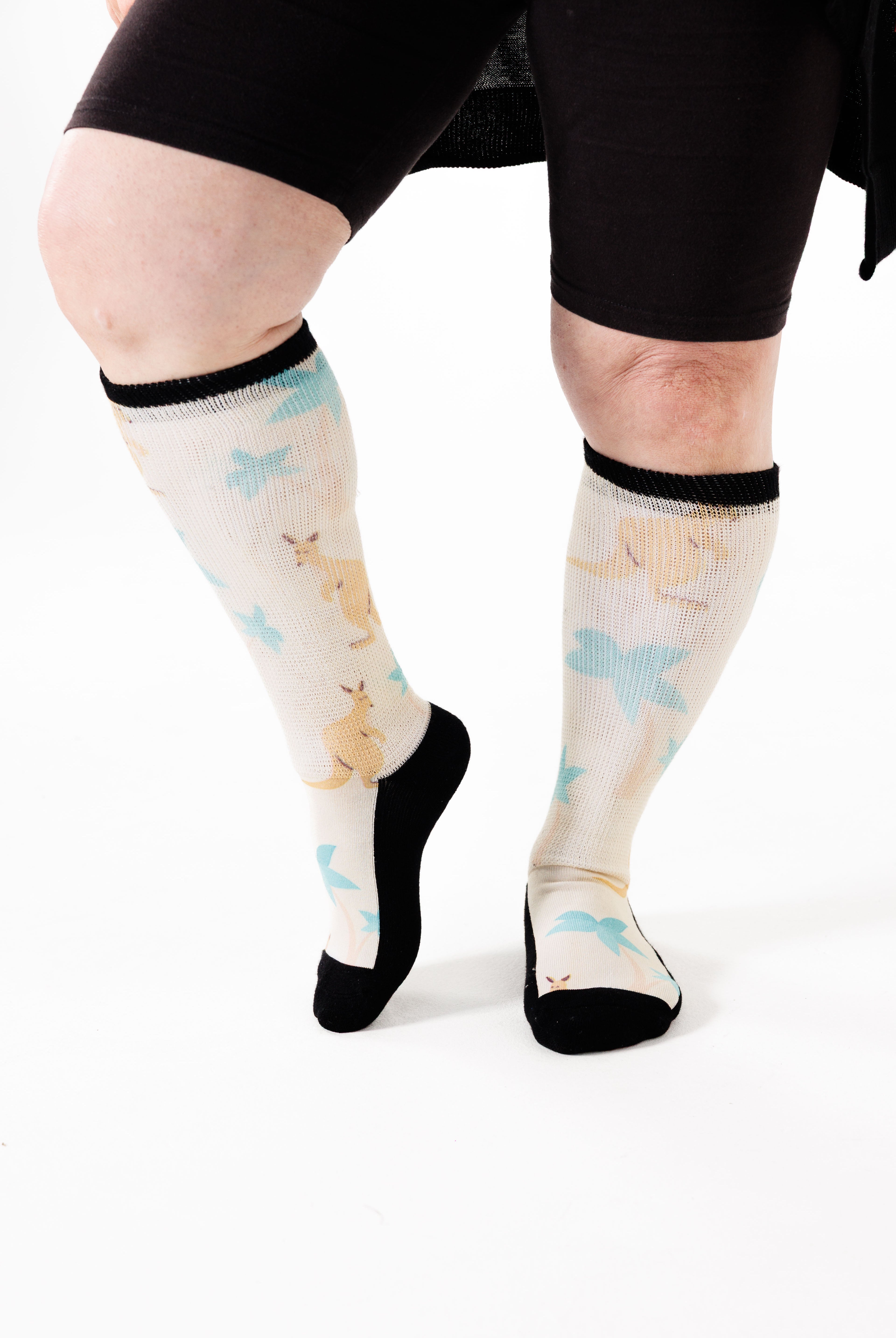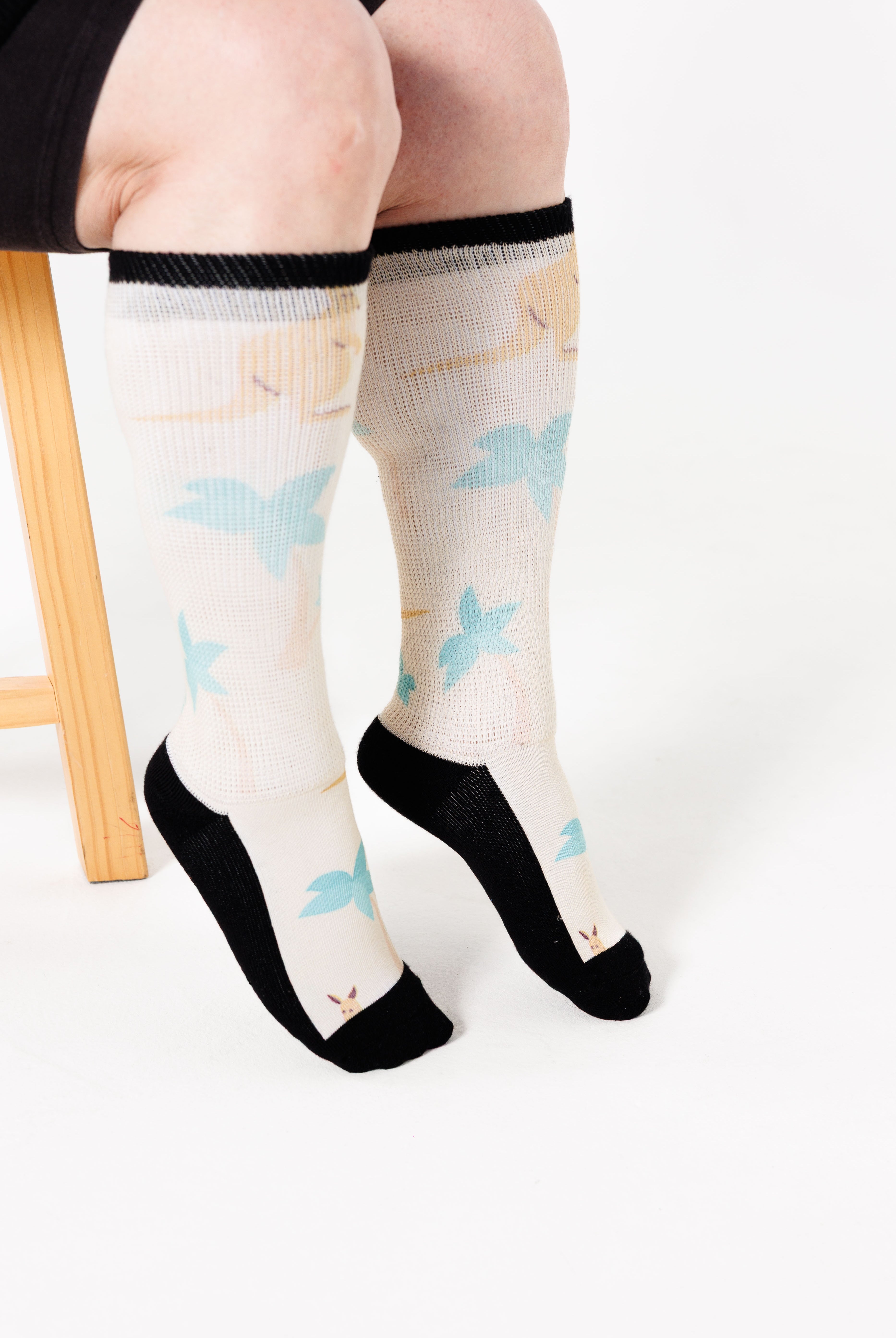 I love how stretchy, soft and comfortable the pair of socks are! It's exactly as they claim. The design is cute too! Happy customer here.