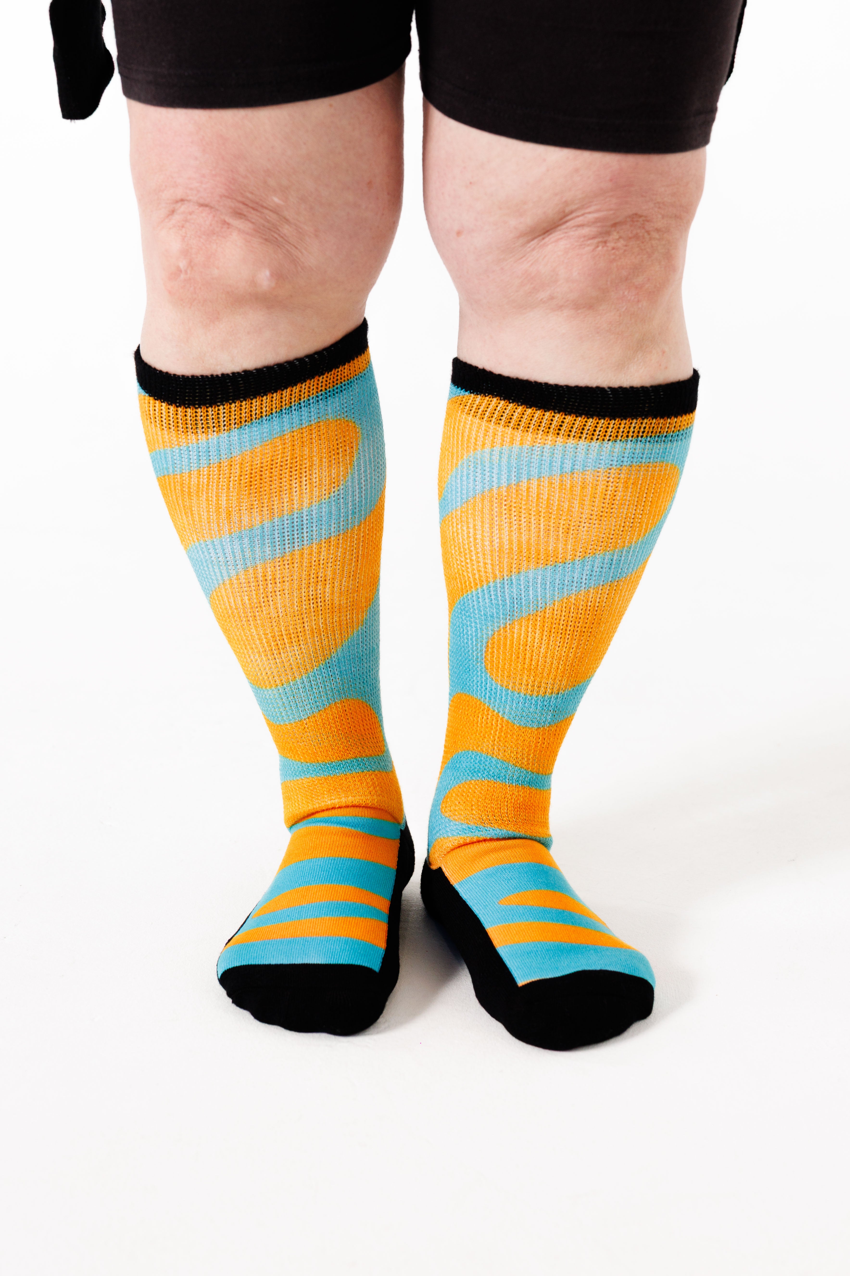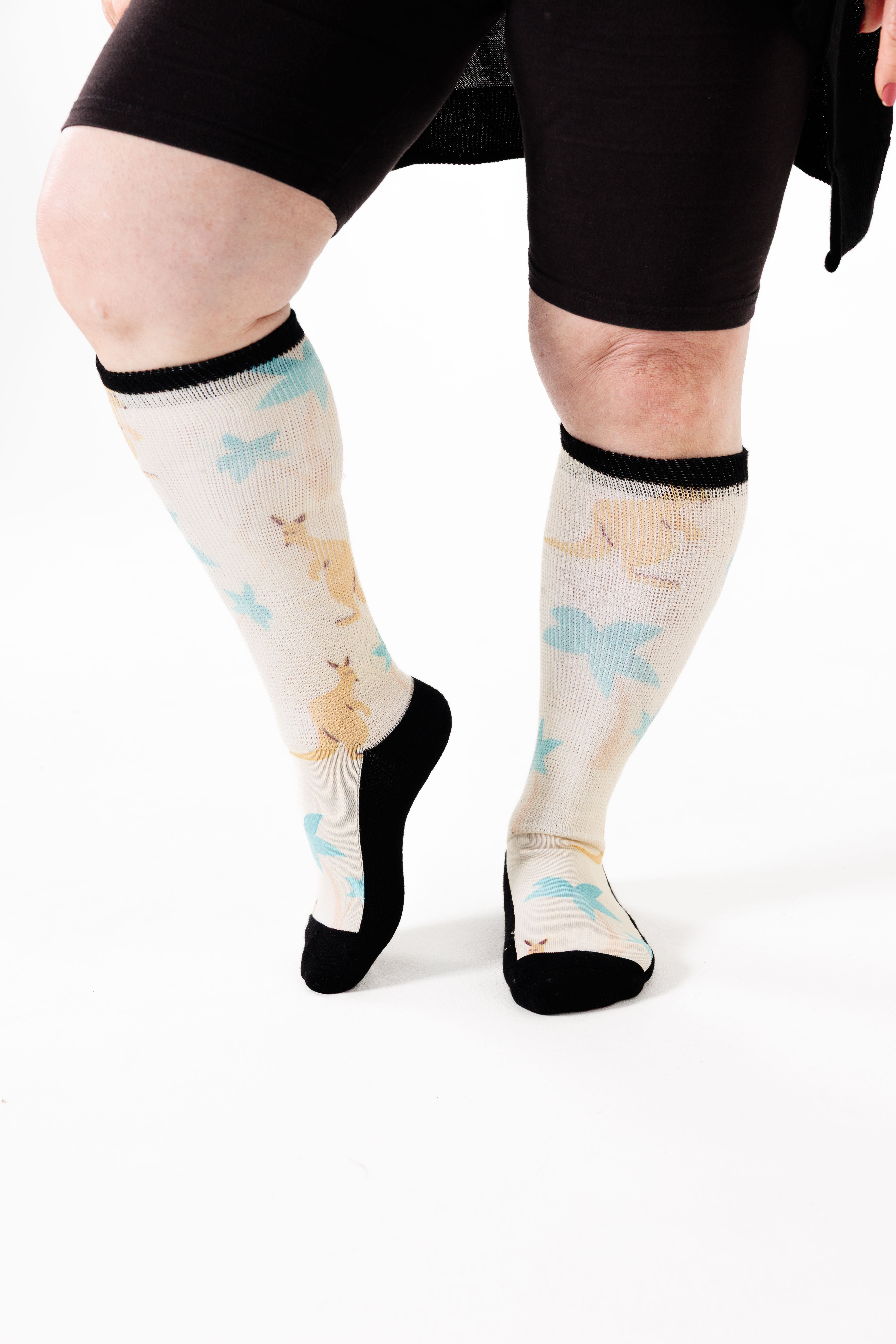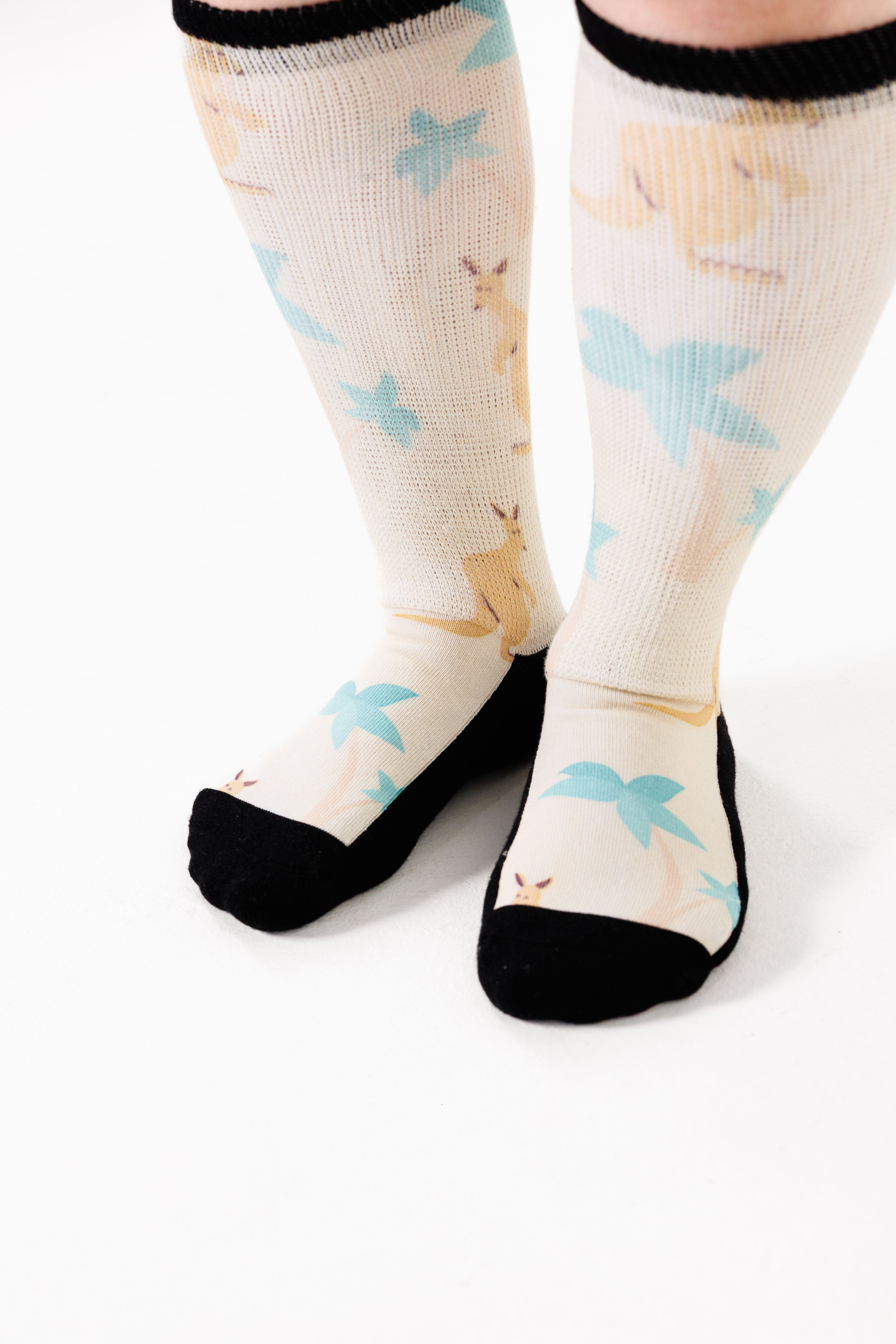 I love how stretchy, soft and comfortable the pair of socks are! It's exactly as they claim. The design is cute too! Happy customer here.