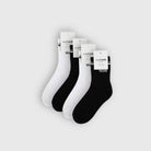 Upgrade your everyday essentials with South Sole’s Black & White Crew Sock Bundle — a 4-pair set featuring 2 classic White pairs and 2 timeless Black pairs. Designed in Australia by a podiatrist, this bundle delivers the perfect balance of comfort, durability and minimalist style. With breathable fabric and the subtle embroidered South Sole logo on every pair, these socks keep your feet supported, fresh and effortlessly stylish.